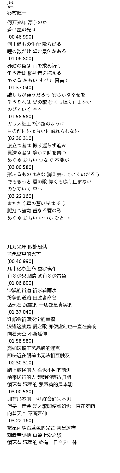 | [03:46.390] | 脈打つ鼓動 重なる愛の歌 |