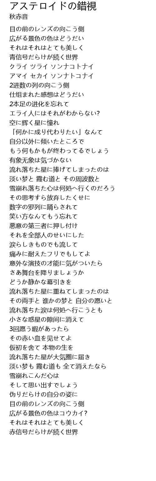 | [02:23.87] | 小さな惑星の隙间に消えて |
