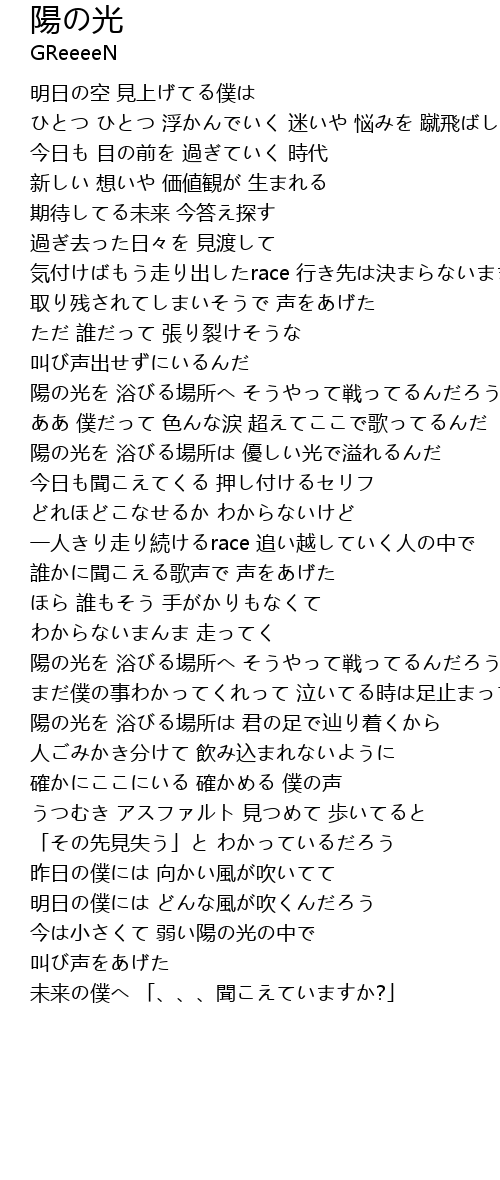 | 陽の光を 浴びる場所へ そうやって戦ってるんだろう | |