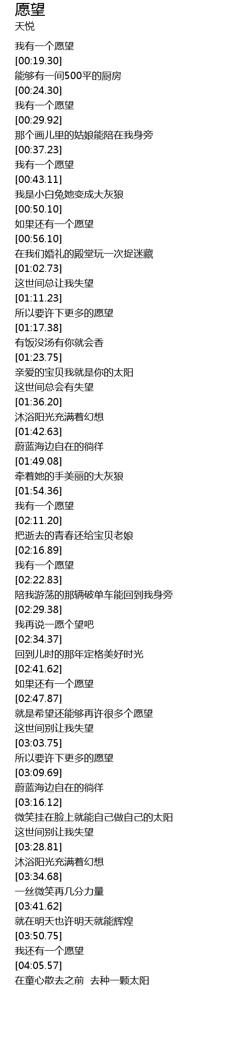 | [02:19.45] | 我有一个愿望 |
