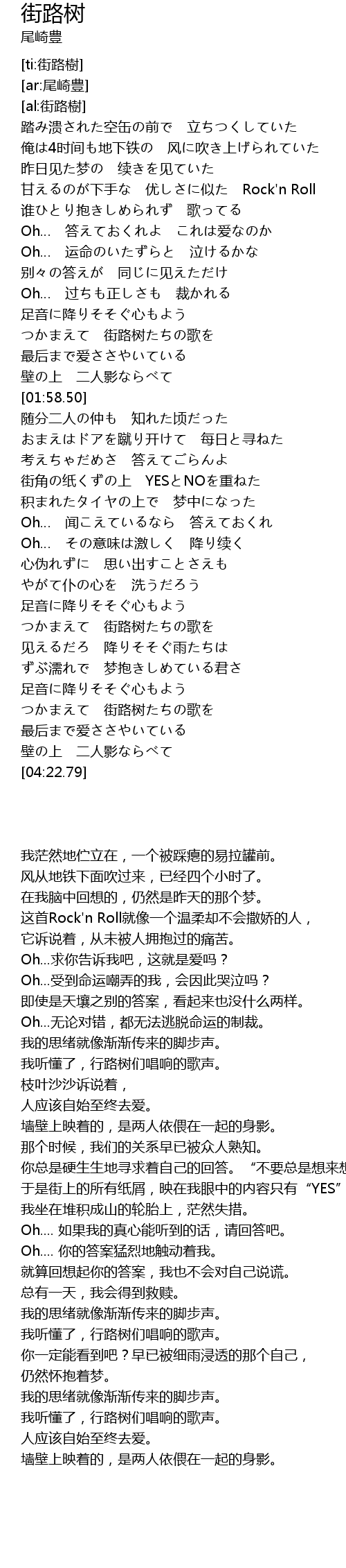 | [01:36.74] | つかまえて 街路树たちの歌を |