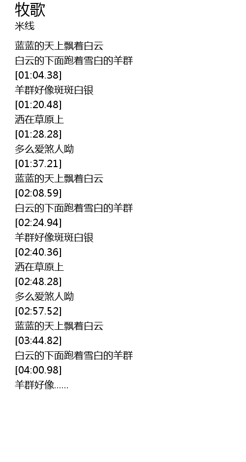 | [03:45.94] | 白云的下面跑着雪白的羊群 |