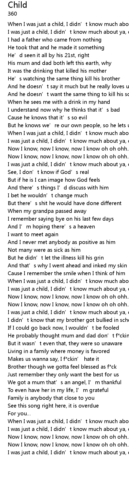 | I was just a child, I didn’t know much about ya, ooh… | |