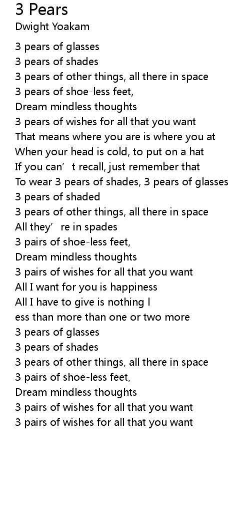 | Song | 3 Pears |