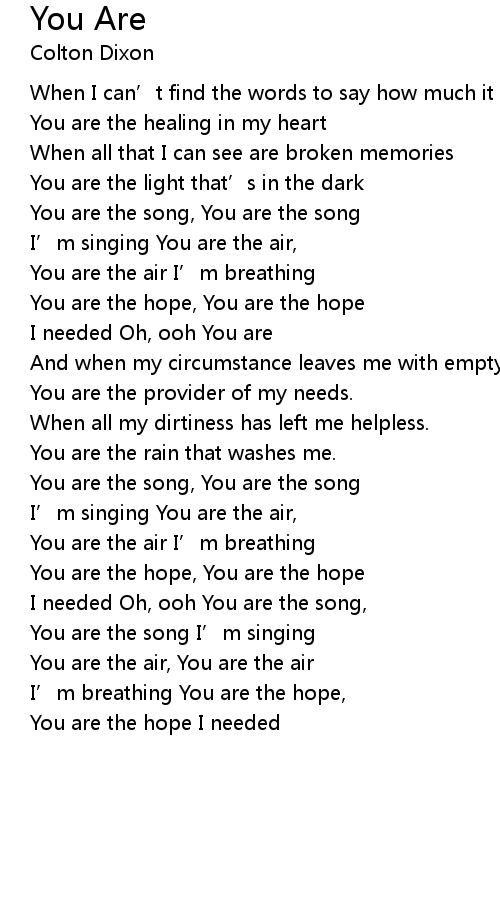 | I needed Oh, ooh You are the song, | |
