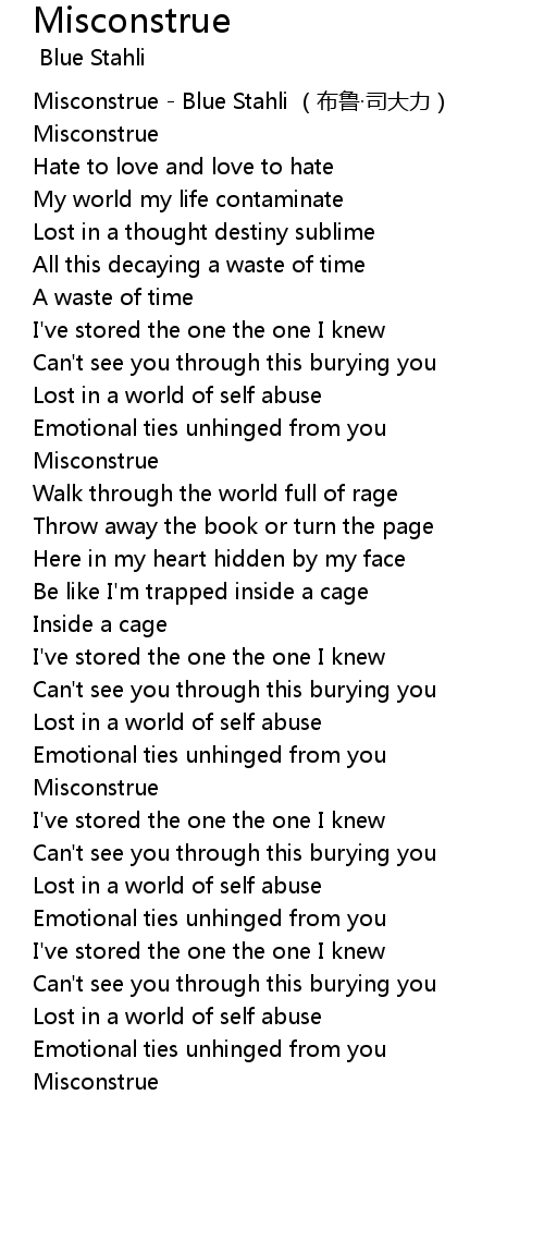 | [00:00.801] | Misconstrue Blue Stahli bù lǔ sī dà lì |