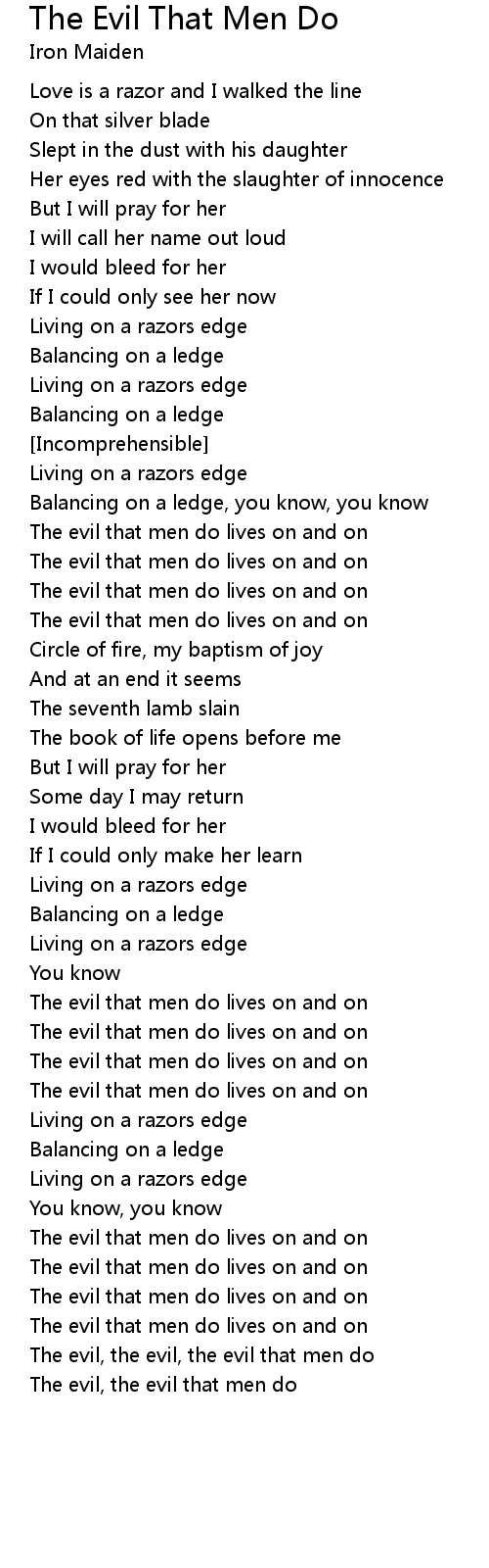 The evil, the evil, the evil that men do |