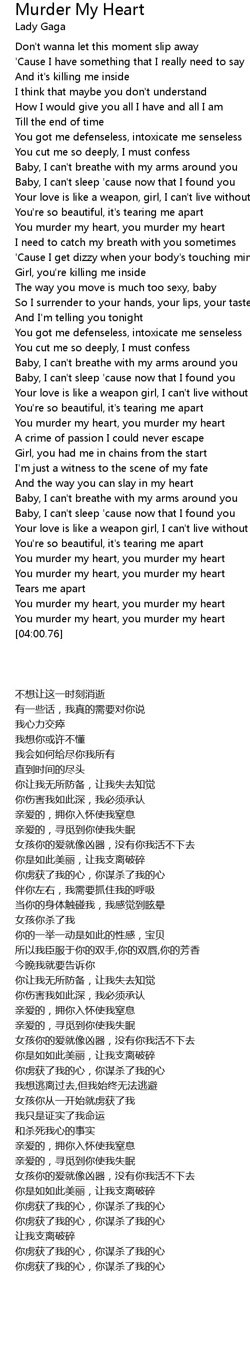 You murder my heart, you murder my heart |