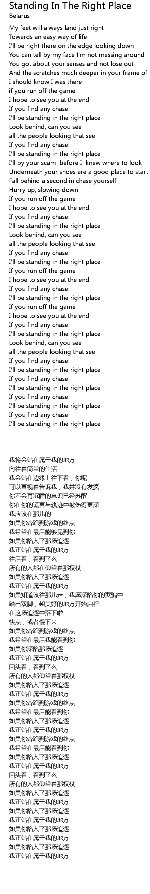 Song Standing In The Right Place