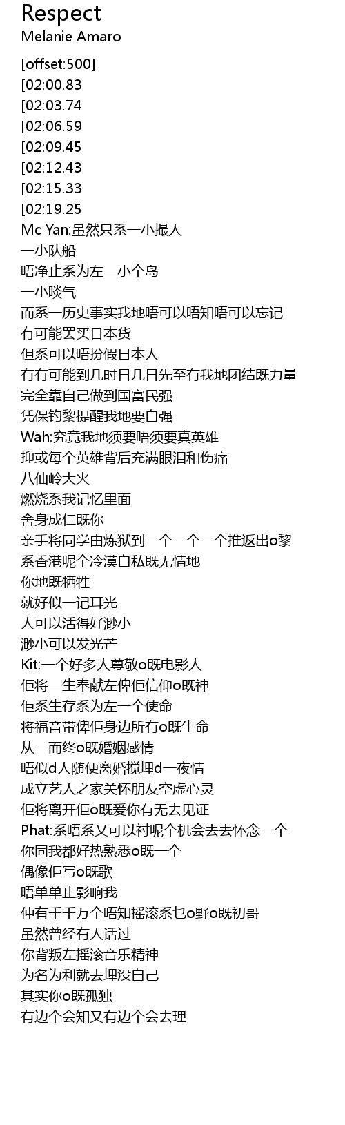 | [02:22.50] | Kit: yí gè hǎo duō rén zūn jìng o jì diàn yǐng rén |