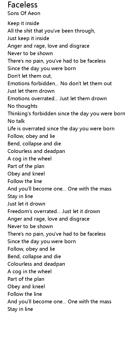 There's no pain, you've had to be faceless |