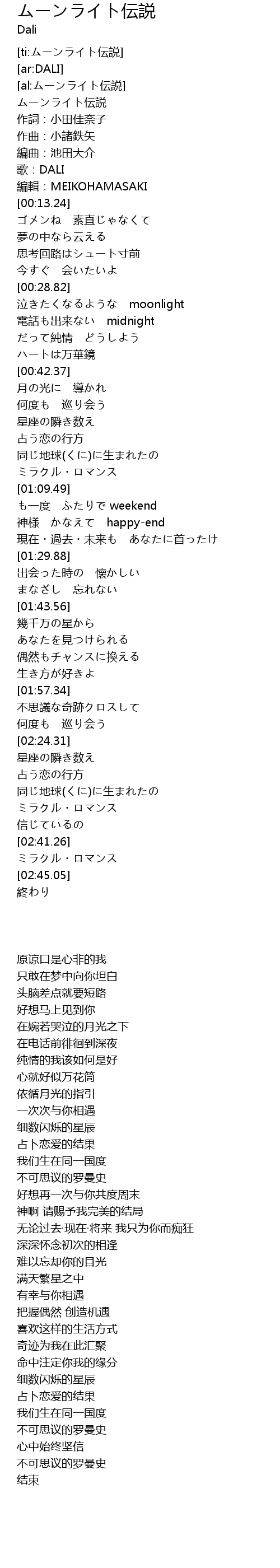 | [02:35.44] | ミラクル・ロマンス |