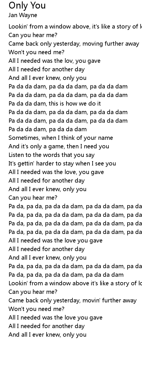 All I needed was the lov, you gave |