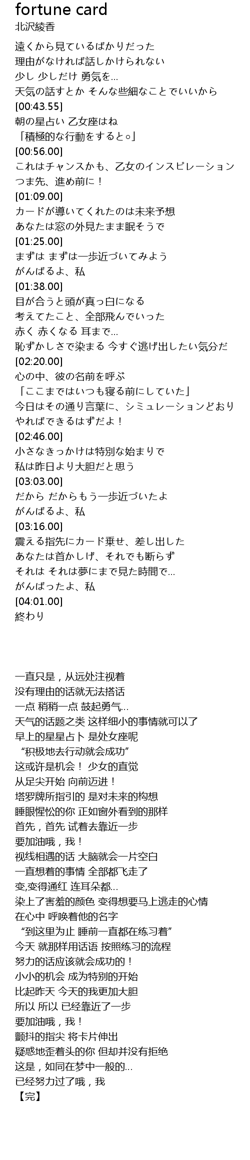 | [01:11.00] | カードが導いてくれたのは未来予想 |