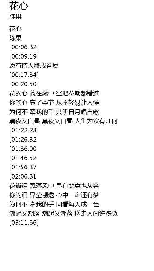 | [00:43.11] | 花的心 藏在蕊中 空把花期都错过 |