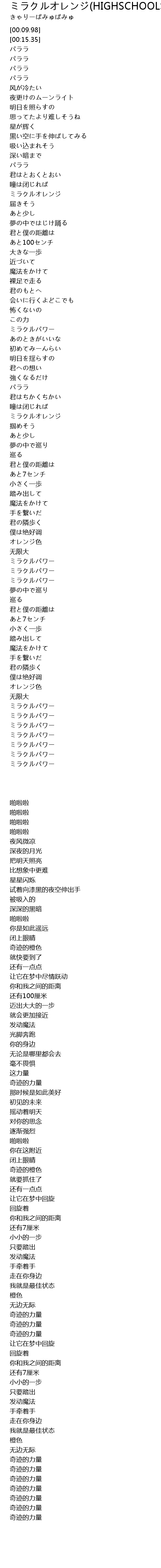 | [02:06.60] | ミラクルオレンジ |