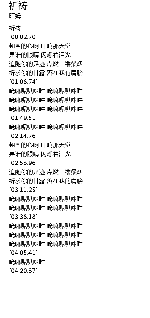 | [03:13.38] | 唵嘛呢叭咪吽 唵嘛呢叭咪吽 |