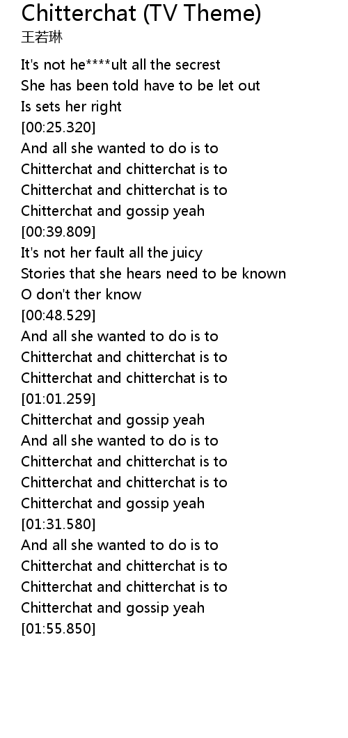 | [01:53.279] | Chitterchat and gossip yeah |