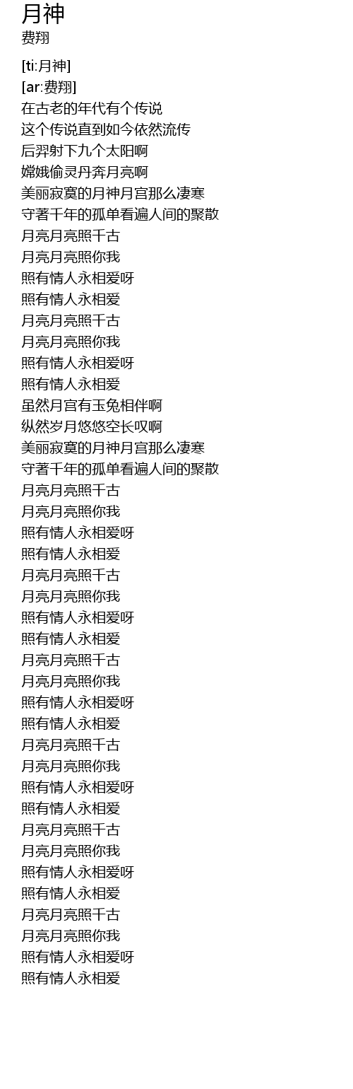 | [01:16.917] | yuè liàng yuè liàng zhào nǐ wǒ |