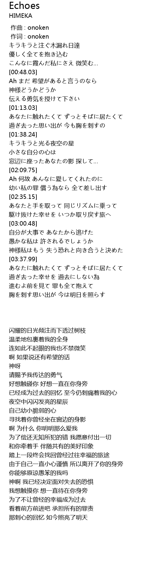 | [03:22.59] | 神様私はもう 失う恐れと向き合うと決めた |