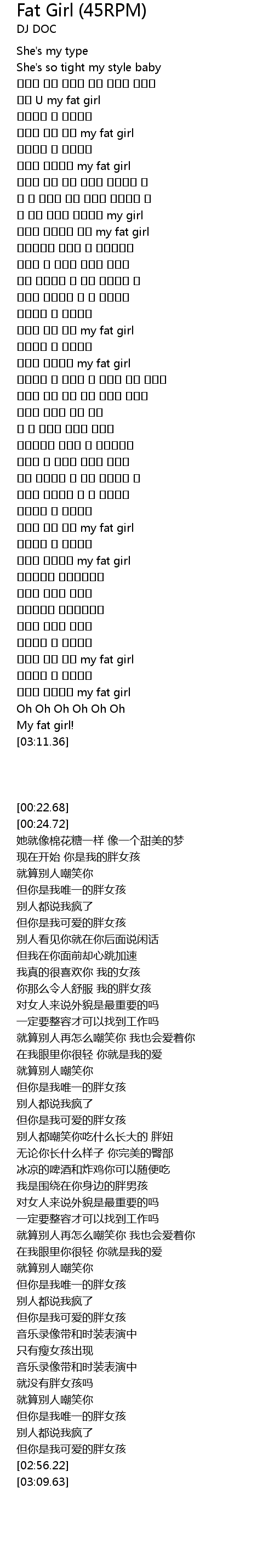 | [00:34.47] | U my fat girl |
