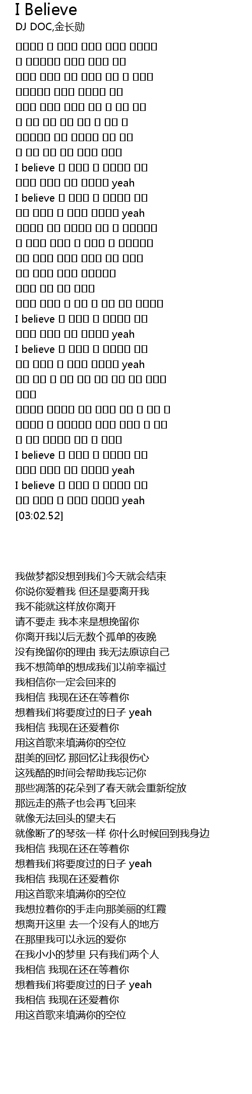 I believe 난 여전히 널 사랑하고 있어 |