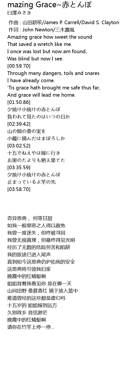 | [00:01.00] | 作词 : John Newton/三木露風 |