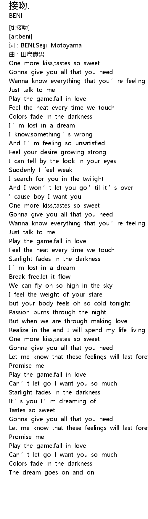 | [01:32.737] | One more kiss, tastes so sweet |