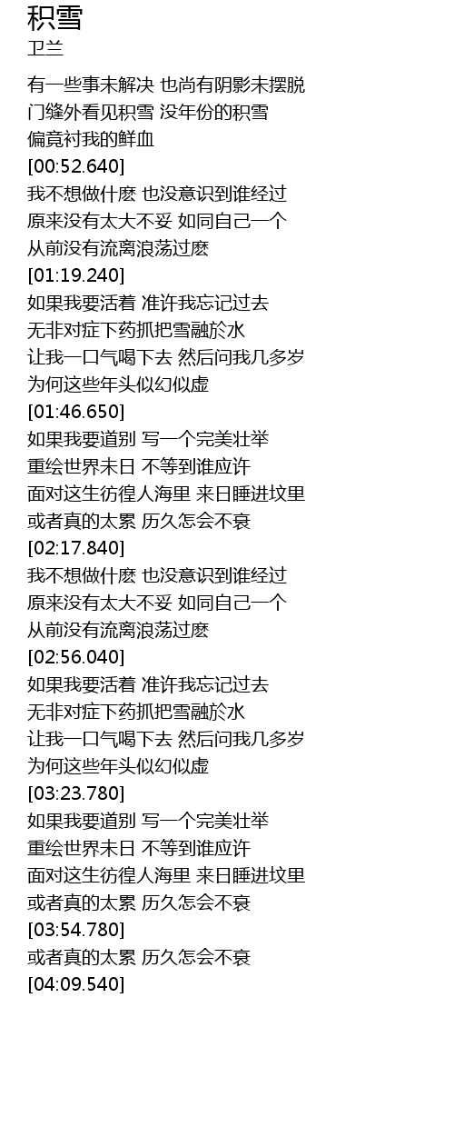 | [00:41.010] | 门缝外看见积雪 没年份的积雪 |
