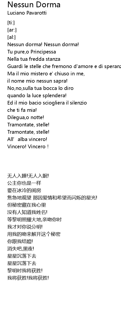 | [00:15.59] | Nessun dorma! Nessun dorma! |
