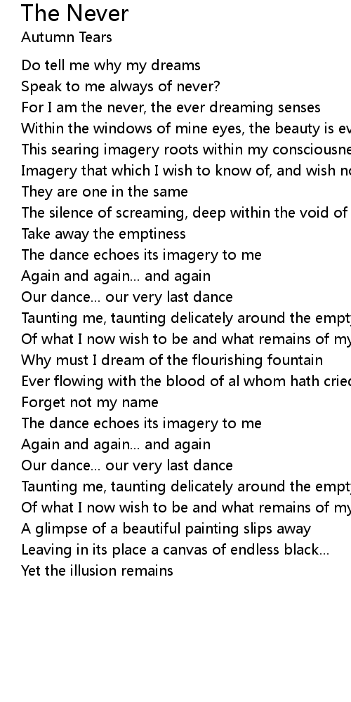 Speak to me always of never? |