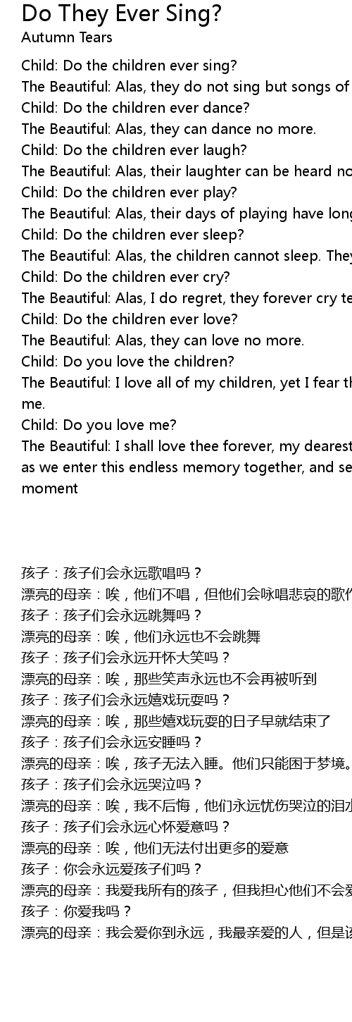 The Beautiful: Alas, they do not sing but songs of woe andremembrance. |