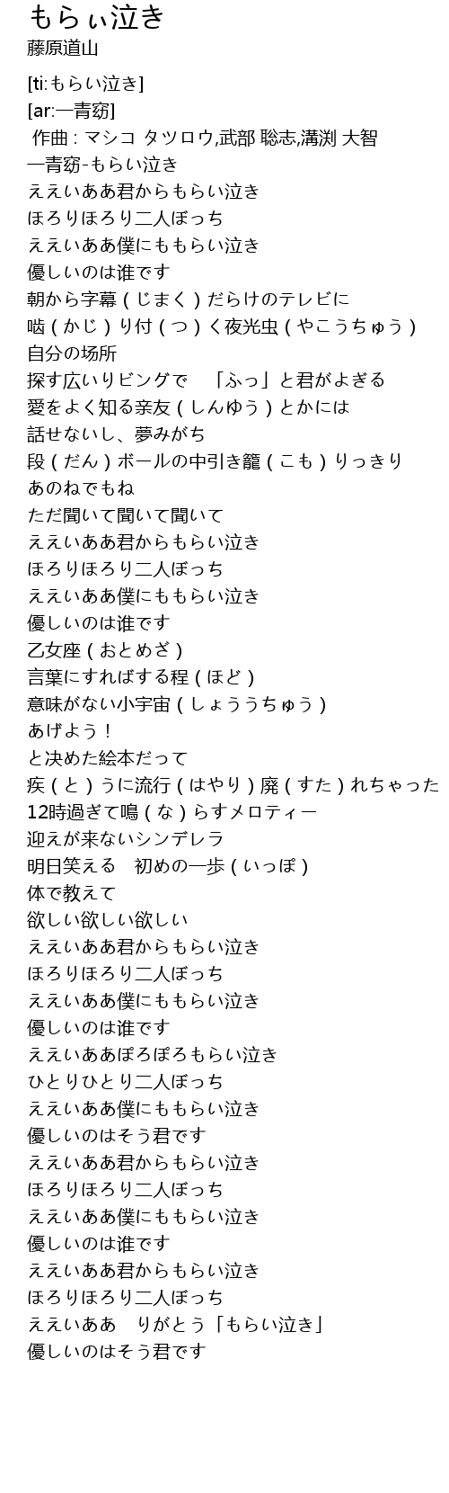 | [01:38.474] | ええいああ僕にももらい泣き |