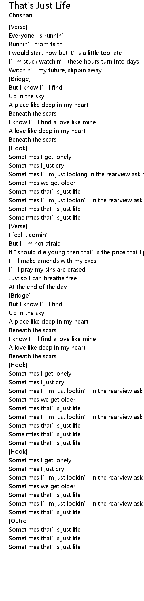 | Sometimes I’m just lookin’ in the rearview asking myself why | |