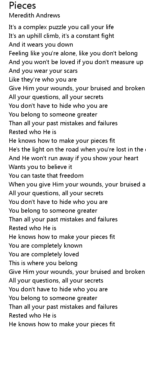 Give Him your wounds, your bruised and broken pieces |