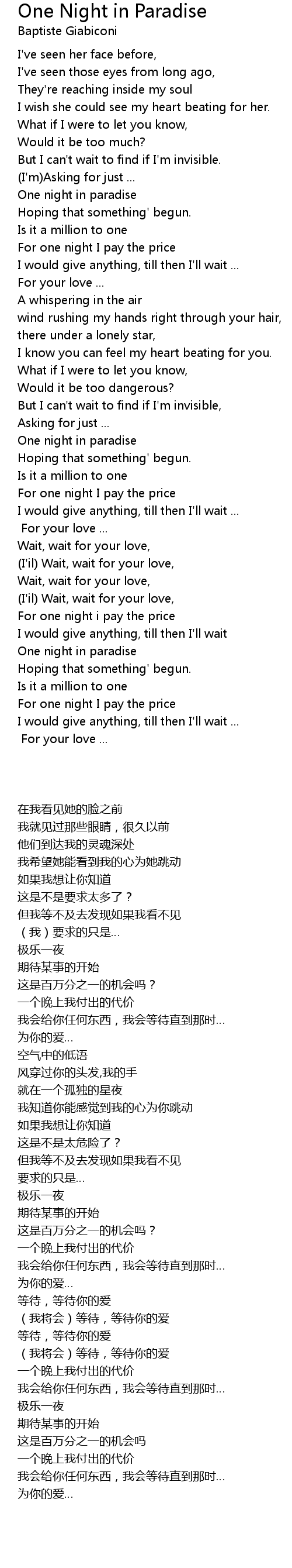 For one night i pay the price |