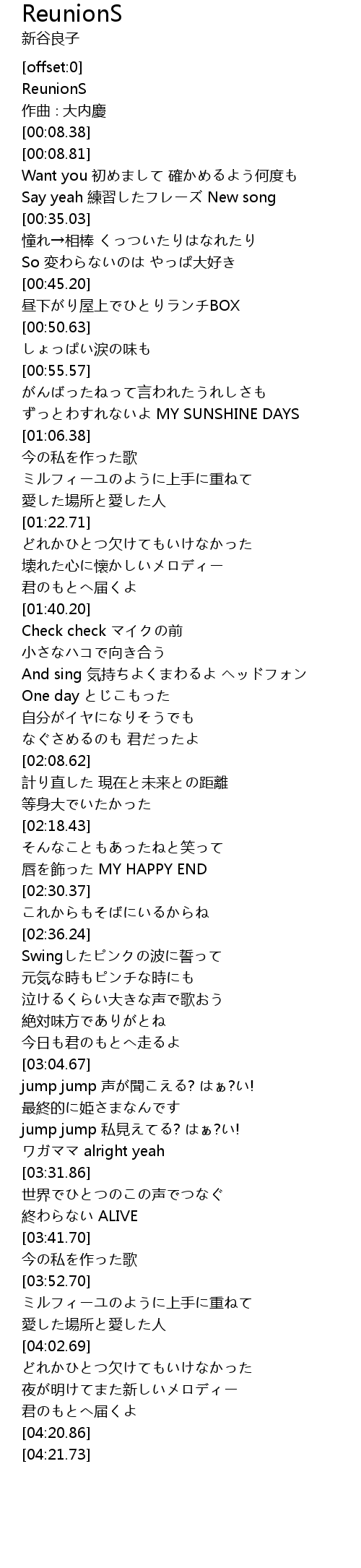 | [01:01.07] | ずっとわすれないよ MY SUNSHINE DAYS |