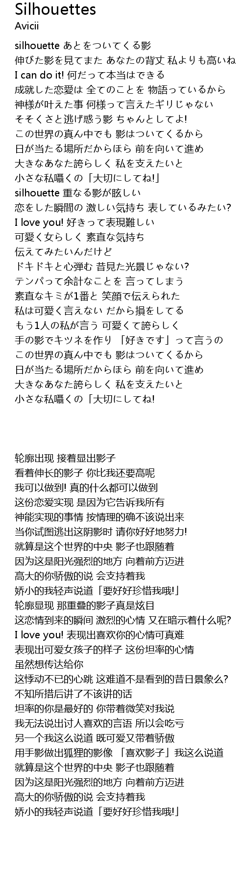 | [01:56.000] | silhouette zhòng yǐng xuàn |