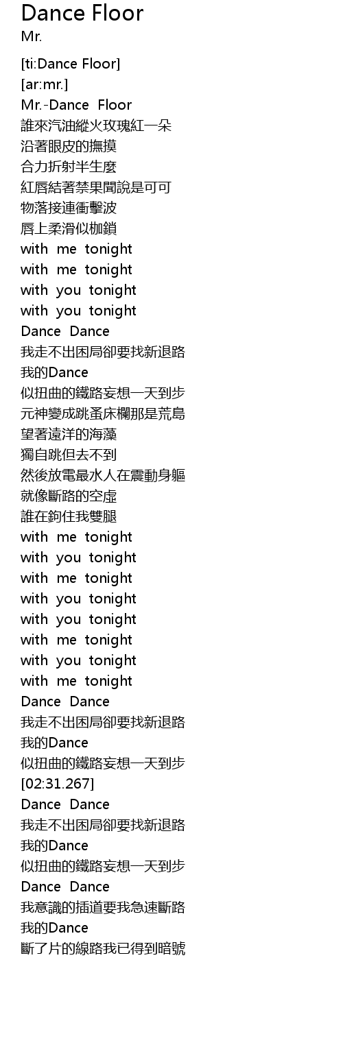 | [00:00.630] | Mr. Dance Floor |
