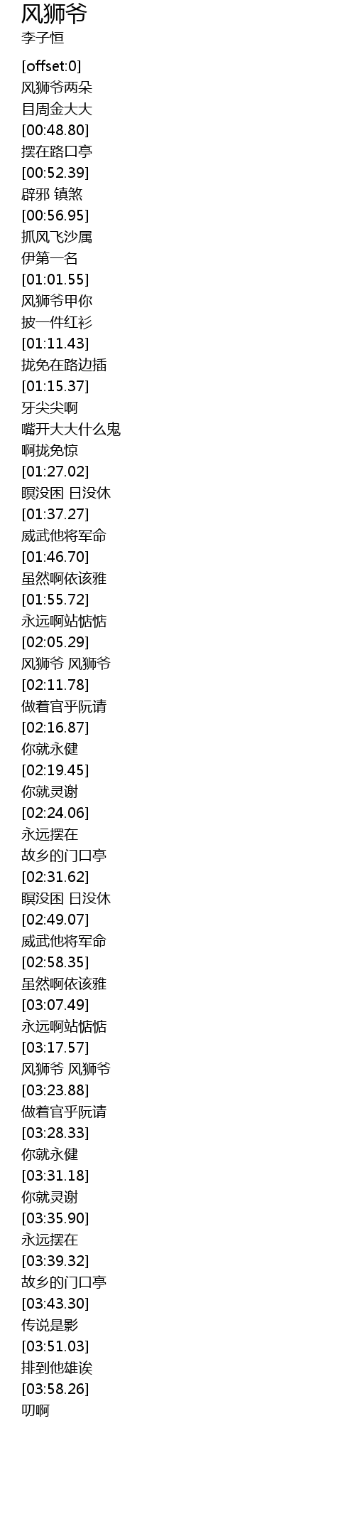 | [03:20.19] | fēng shī yé fēng shī yé |