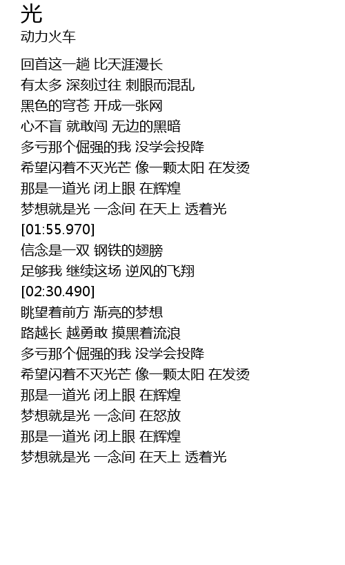 [03:39.510] 梦想就是光 一念间 在天上 透着光