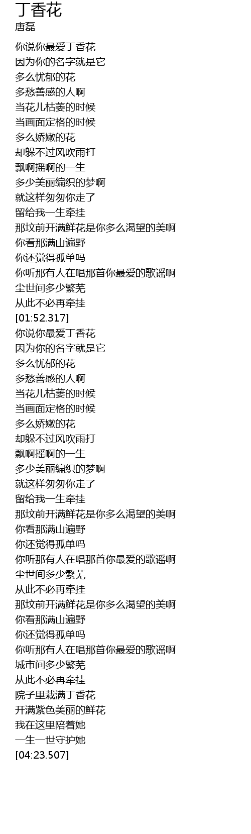 | [02:26.097] | nǐ shuō nǐ zuì ài dīng xiāng huā |