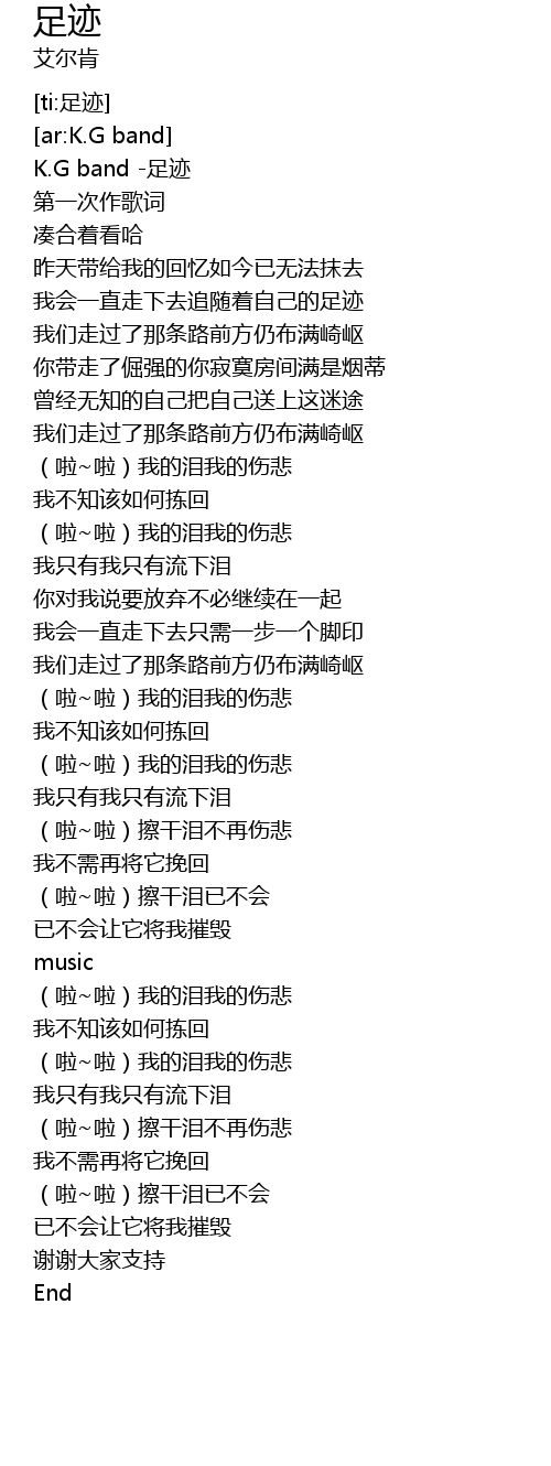 | [03:53.994] | 我会一直走下去只需一步一个脚印 |