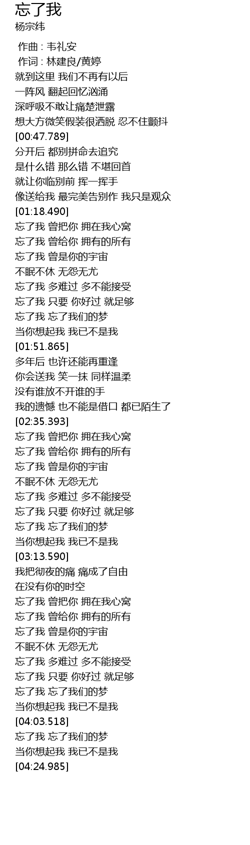 | [03:48.392] | 忘了我 只要 你好过 就足够 |