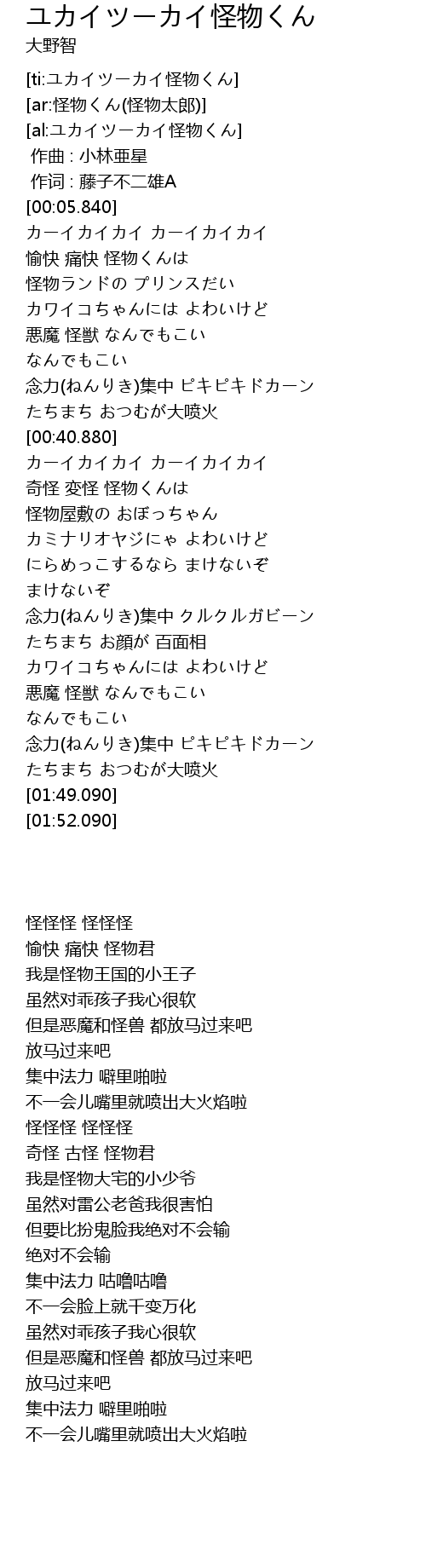 | [00:59.520] | 奇怪 変怪 怪物くんは |