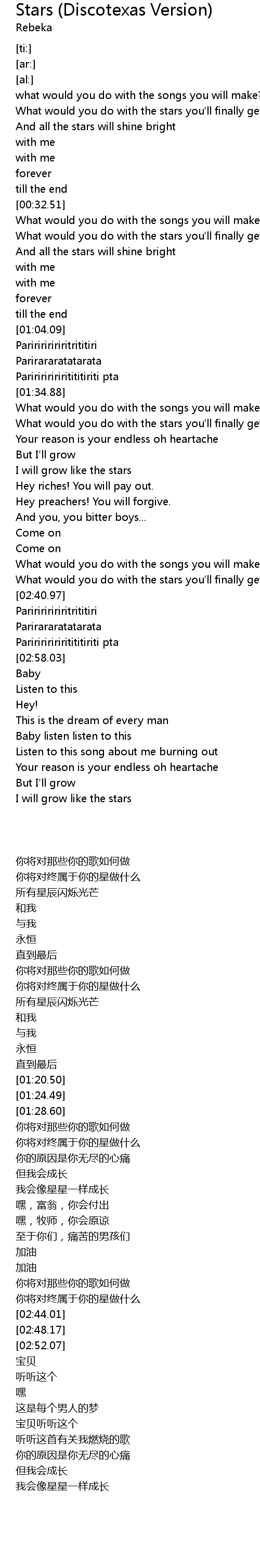 | [02:31.70] | What would you do with the stars you'll finally get to!? |