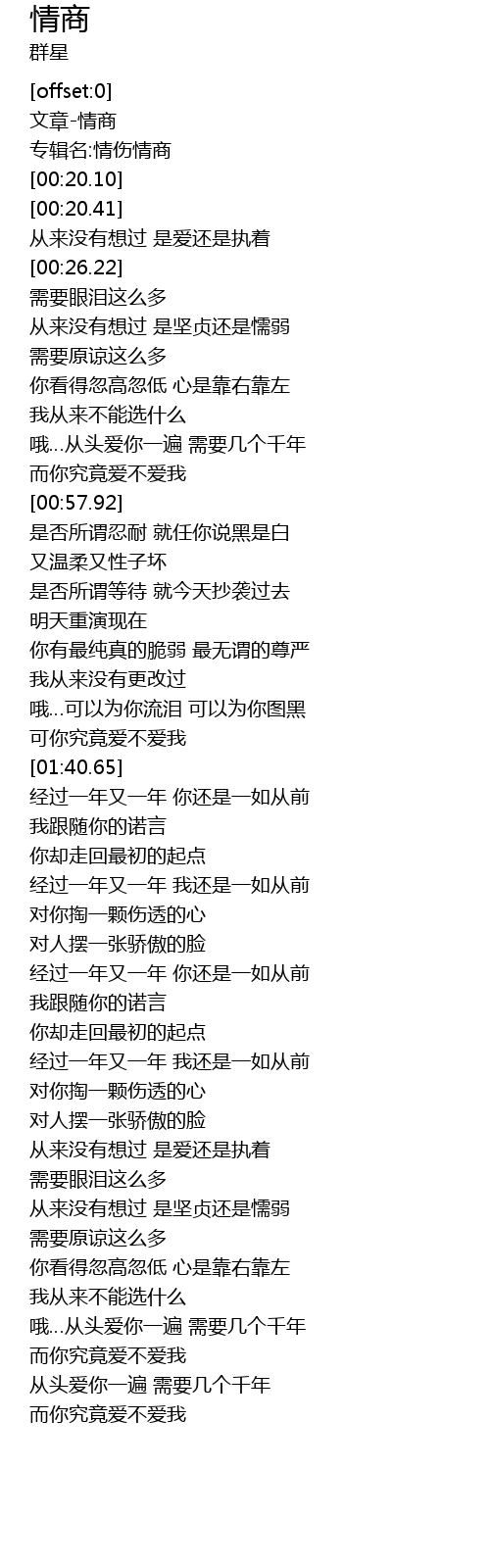 | [00:03.92] | 专辑名:情伤情商 |