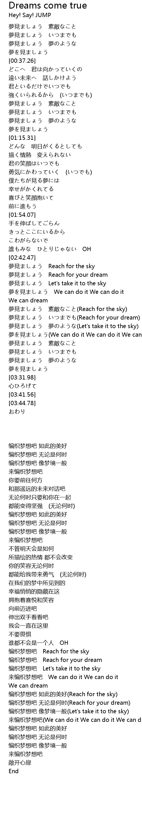 | [03:06.58] | 夢見ましょう 夢のような(Let's take it to the sky) |