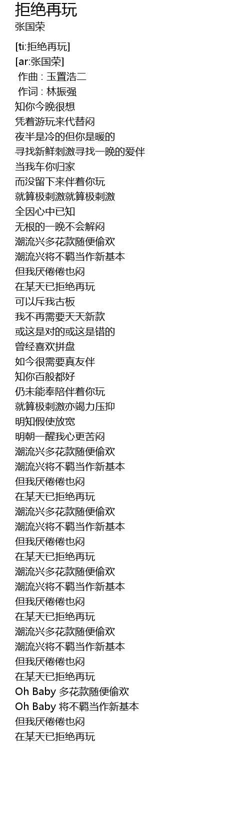 | [ti:拒绝再玩] | |