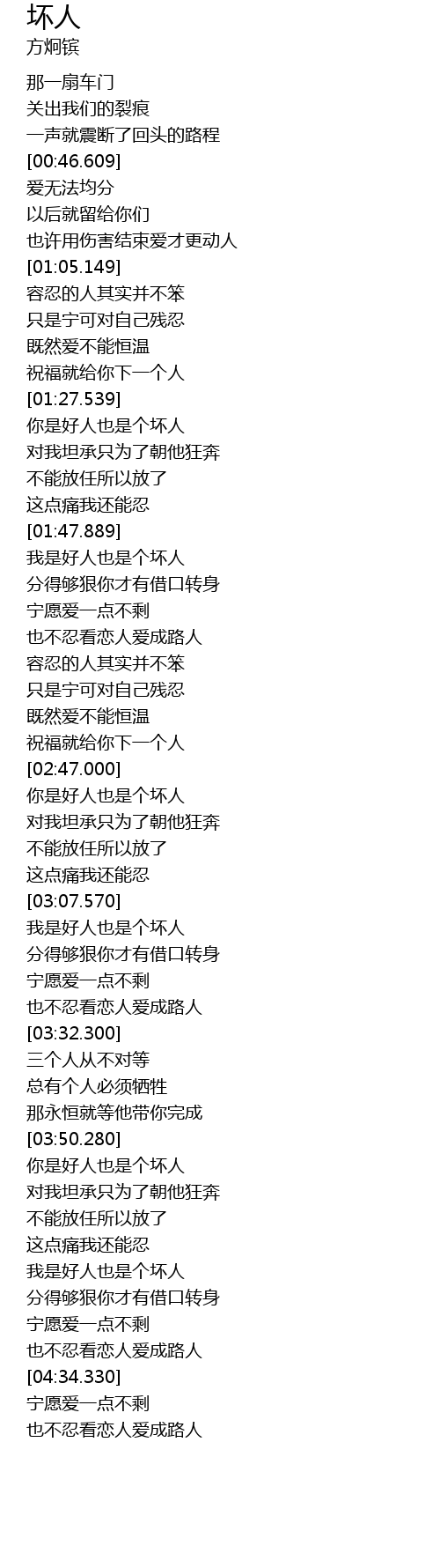 | [03:51.220] | nǐ shì hǎo rén yě shì gè huài rén |
